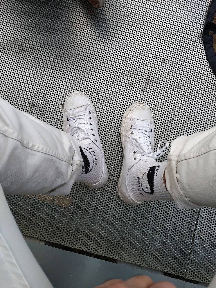 There was a well groomed, carefully dressed guy sitting opposite me in the train. His rolled up trousers revealed his high socks that read "I don't give a fuck". I thought he obviously gave way too many fucks - a carefully put together image shielding a fragile self.